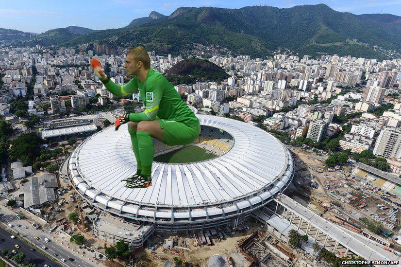 Foto penjaga gol Belanda, Jasper Cillessen 'duduk' di tiang ketika aksi menentang Brazil dalam penentuan tempat ketika mula merebak.